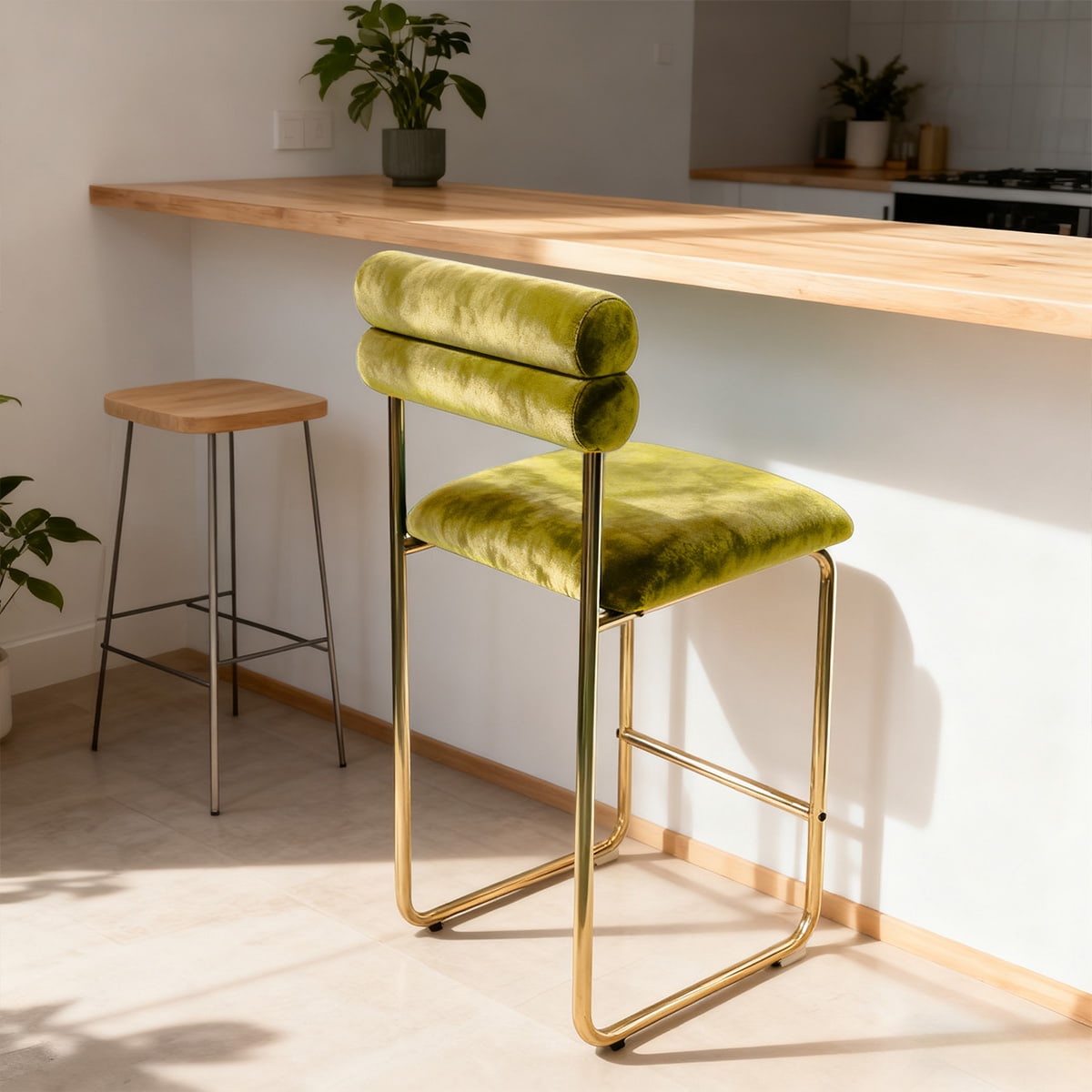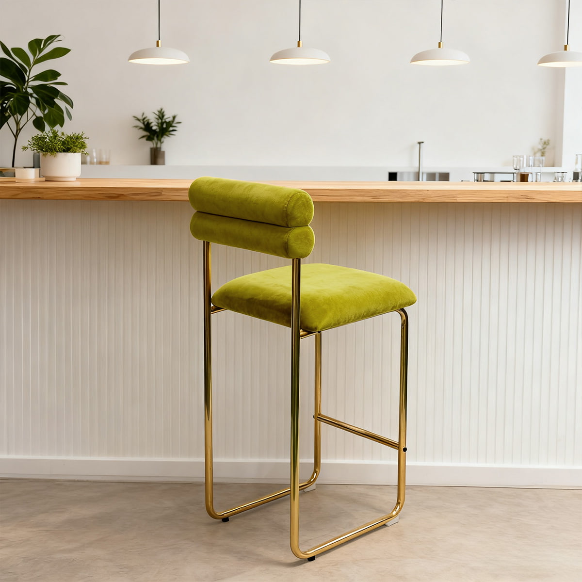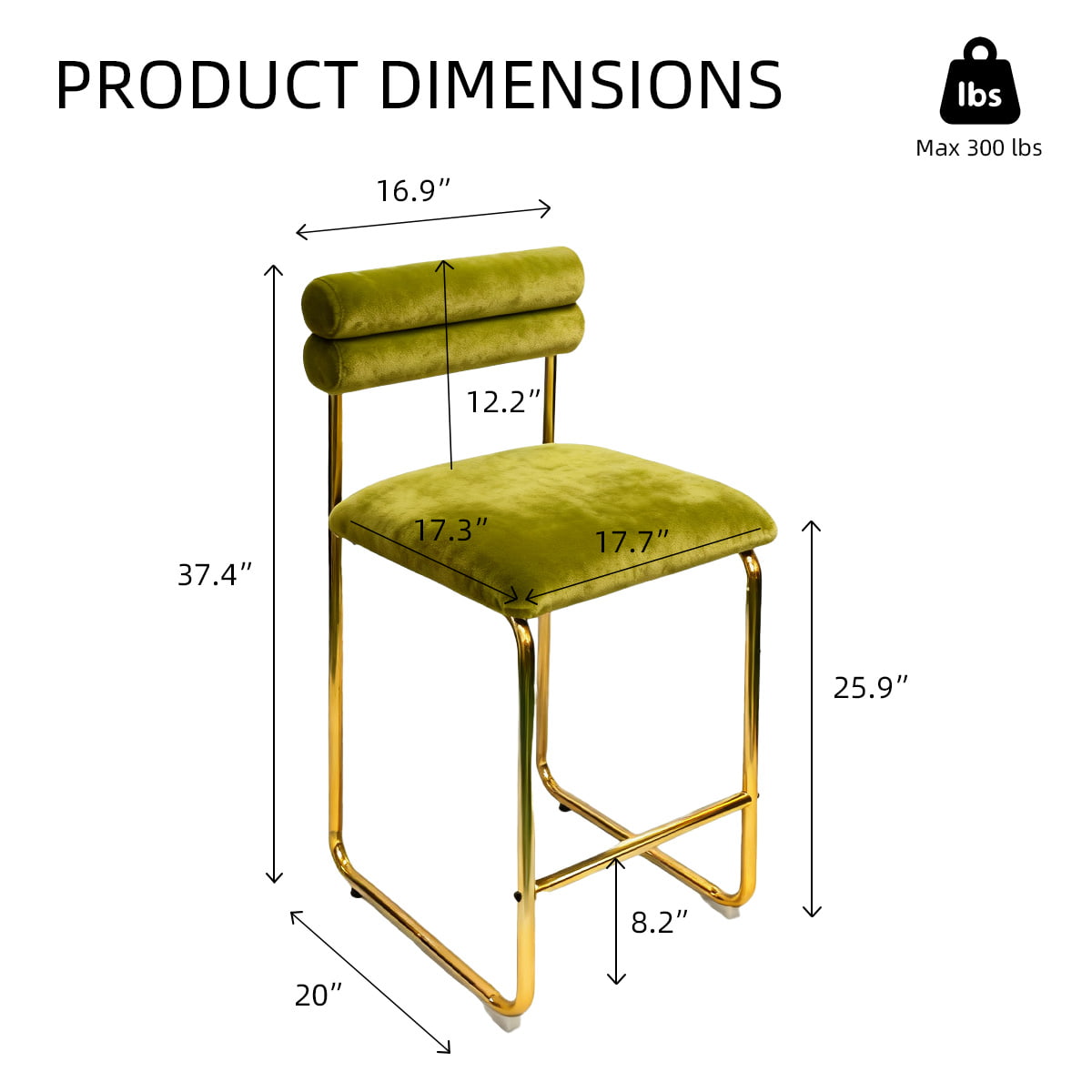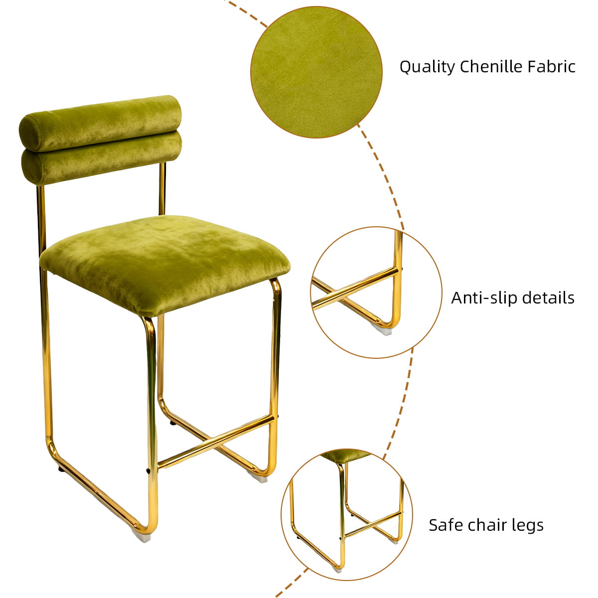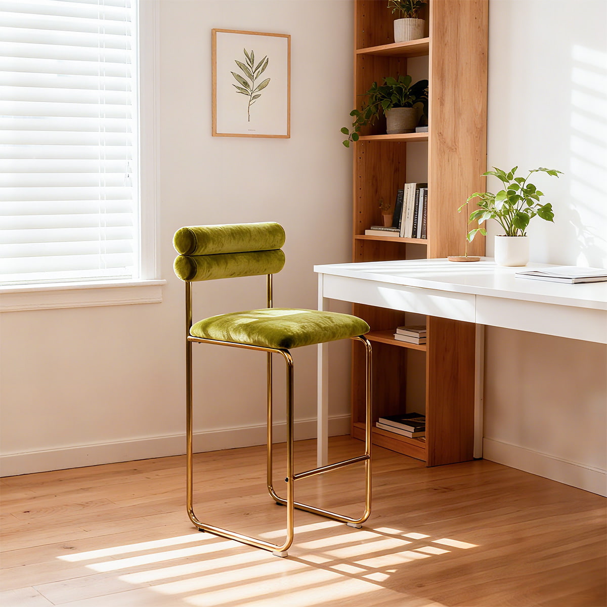 এর 37.4-ইঞ্চি উচ্চতা আদর্শ রান্নাঘরের কাউন্টার এবং ডাইনিং বারগুলির সাথে ফিট করে, যেখানে 25.9-ইঞ্চি আসনটি দীর্ঘ কথোপকথন বা নৈমিত্তিক ডাইনিংয়ের জন্য সর্বোত্তম আরাম নিশ্চিত করে৷ নরম মখমলের গৃহসজ্জার সামগ্রী একটি বিলাসবহুল স্পর্শকাতর অভিজ্ঞতা প্রদান করে এবং সোনার ধাতুপট্টাবৃত পা একটি পরিমার্জিত স্পর্শ যোগ করে। একটি উচ্চ-স্থিতিস্থাপক ফোম কুশন এবং অ্যান্টি-স্লিপ বেস সহ, এই স্টুলটি আরাম, শৈলী এবং স্থায়িত্বকে একত্রিত করার জন্য ডিজাইন করা হয়েছে — বাড়ি এবং বাণিজ্যিক উভয় জায়গার জন্য উপযুক্ত৷