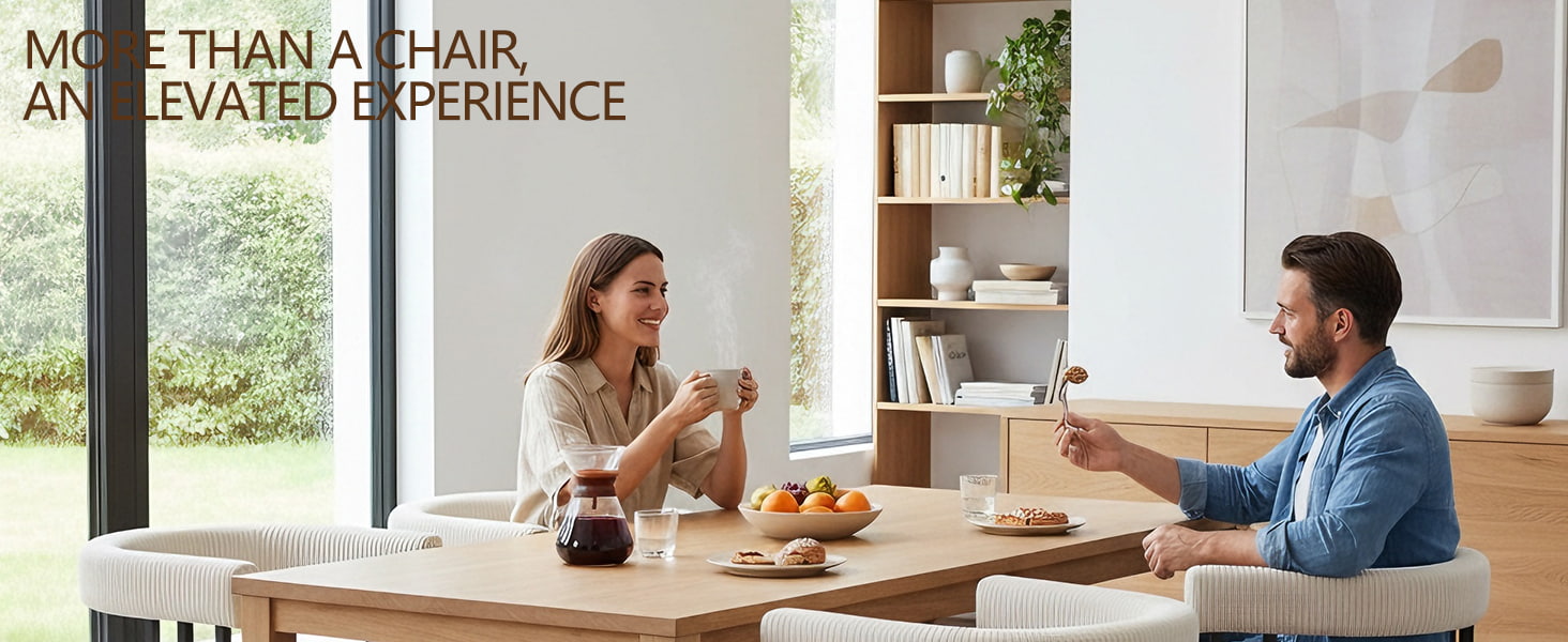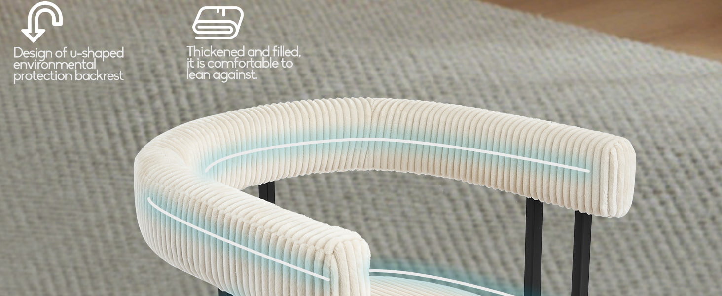● U-আকৃতির এরগোনমিক ব্যাকরেস্ট: কোমর এবং পিঠকে আরামদায়কভাবে সমর্থন করার জন্য ডিজাইন করা হয়েছে, ডাইনিং, কাজ বা আরাম করার জন্য আদর্শ।