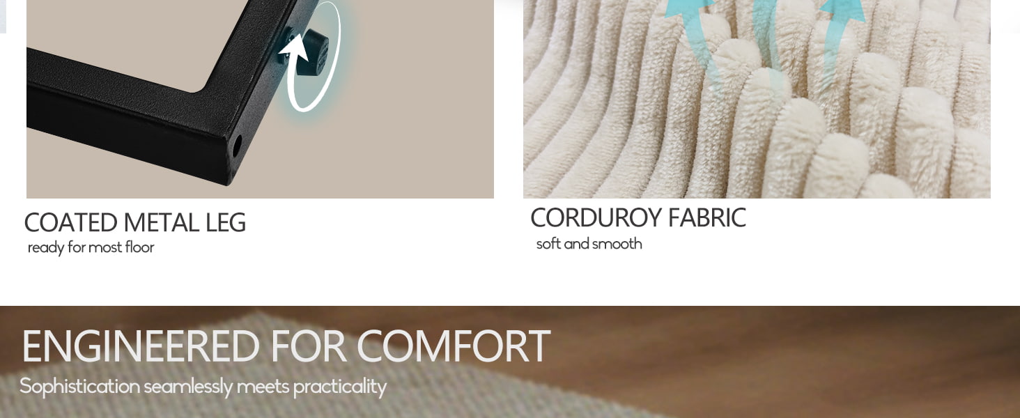 ● স্থির ধাতব পায়ের গঠন: কালো প্রলেপযুক্ত ধাতব পা শক্তি এবং ভারসাম্য নিশ্চিত করে, দৈনন্দিন পরিবারের ব্যবহারের জন্য উপযুক্ত।