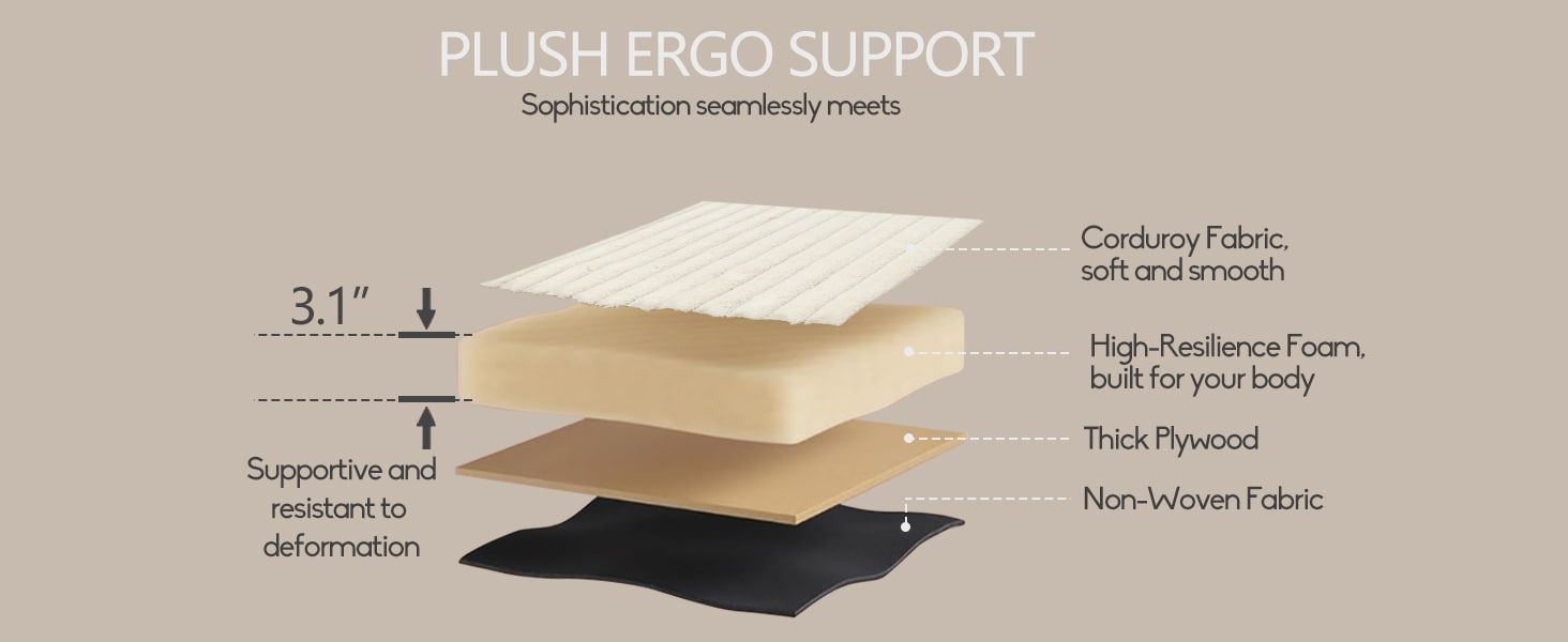| কুশন ফিলিং | উচ্চ স্থিতিস্থাপকতা ফেনা |