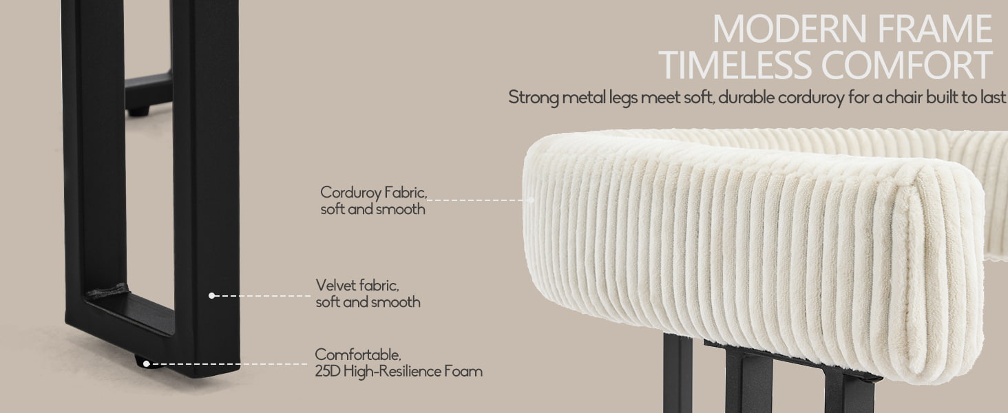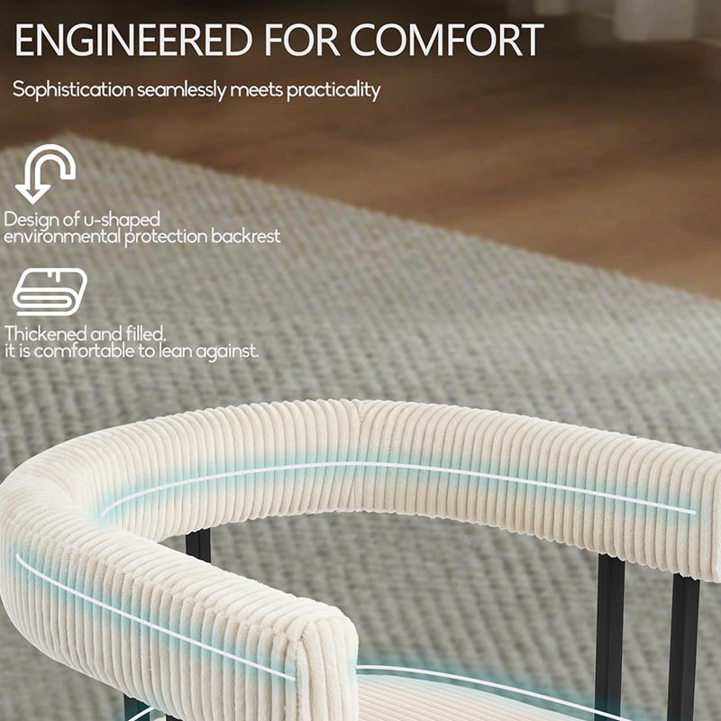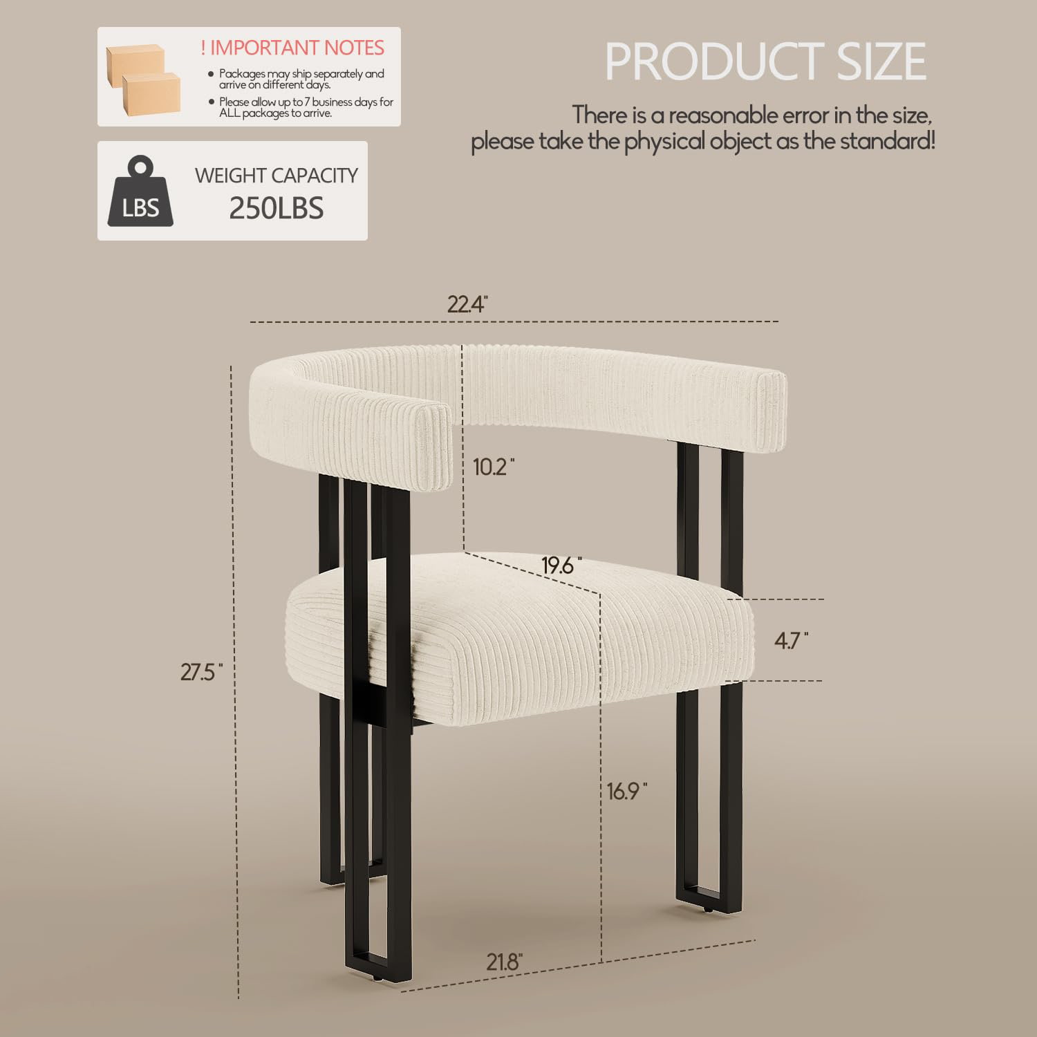 বাউকল ডাইনিং চেয়ার, মেটাল লেগ সহ সাদা কর্ডুরয় আপহোলস্টার্ড ডাইনিং রুমের চেয়ার, মিড সেঞ্চুরি আধুনিক অ্যাকসেন্ট চেয়ার