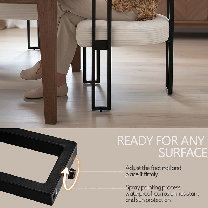 সামঞ্জস্যযোগ্য অ্যান্টি-স্লিপ ফুট প্যাড সহ শক্ত লেপযুক্ত ধাতব পা দ্বারা সমর্থিত, এই ডাইনিং চেয়ারটি আপনার মেঝে রক্ষা করার সময় স্থিতিশীল থাকে। এর পরিষ্কার মধ্য-শতাব্দীর সিলুয়েট এবং নিরপেক্ষ সাদা টোন সহ, এটি অনায়াসে ডাইনিং রুম, রান্নাঘর, বসার ঘর, শয়নকক্ষ বা অধ্যয়নের স্থানগুলিতে মিশে যায়৷