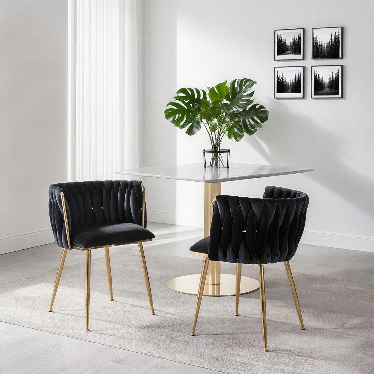 বোনা ব্যাকরেস্ট সহ আইভরি মখমলের গৃহসজ্জার ডাইনিং চেয়ারটি একটি বহুমুখী আধুনিক অ্যাকসেন্ট চেয়ার, ভ্যানিটি স্টুল এবং মধ্য শতাব্দীর পাশের চেয়ার। বিলাসবহুল ভেলভেট ফ্যাব্রিক, সোনালি ধাতব পা, এরগনোমিক ব্যাক সাপোর্ট এবং উচ্চ-ঘনত্বের ফোম কুশন সমন্বিত, এটি আরাম এবং শৈলী উভয়ের জন্য ডিজাইন করা হয়েছে। ডাইনিং রুম, লিভিং রুম, শয়নকক্ষ, ভ্যানিটি রুম, অফিস, ক্যাফে এবং হোটেলের জন্য আদর্শ, এটি বাড়ির ব্যবহারকারী এবং বাণিজ্যিক ক্রেতা উভয়ের চাহিদা পূরণ করে।