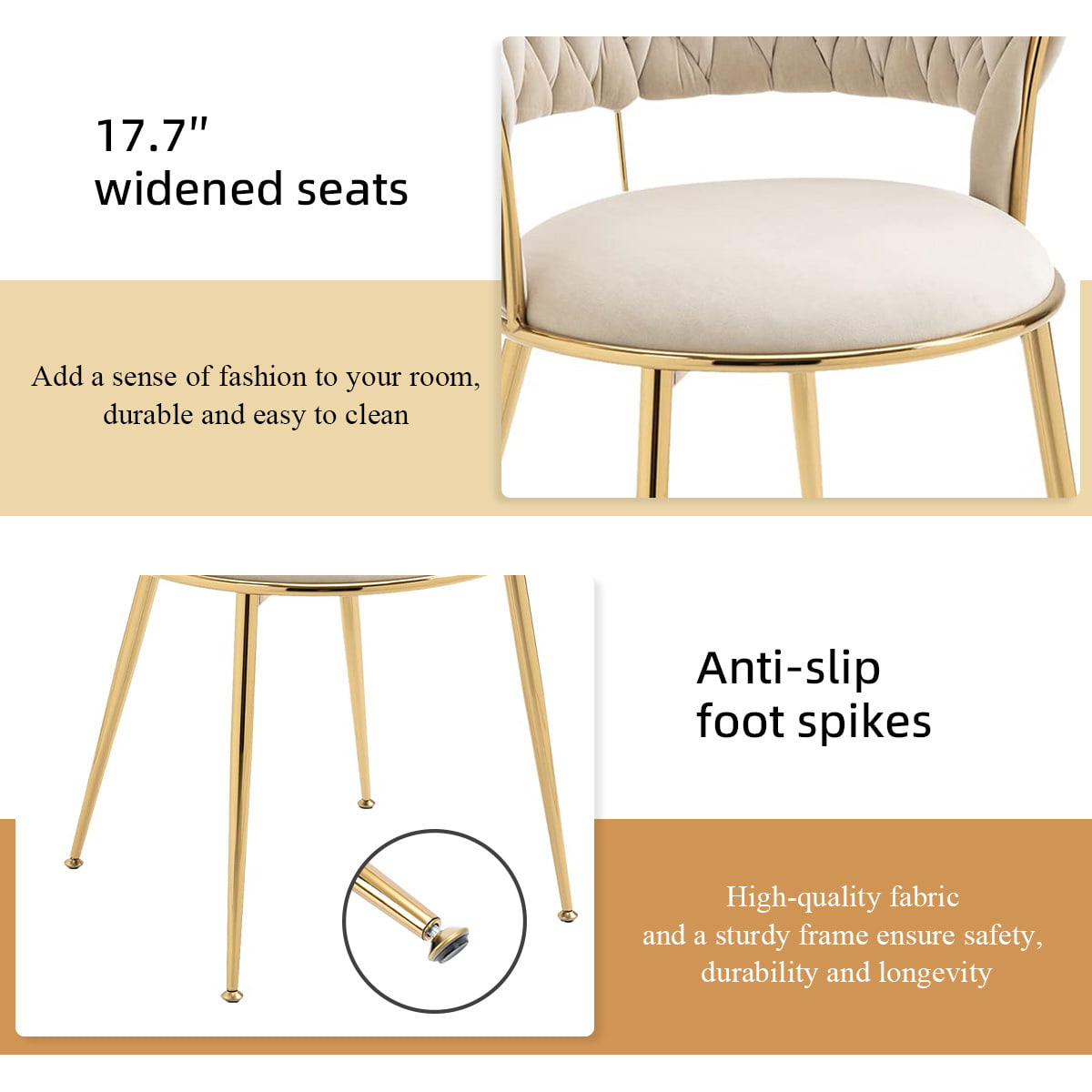 ● অ্যান্টি-মরিচা সোনার ধাতু পায়ে স্থিতিশীলতা এবং আধুনিক কবজ প্রদান করে