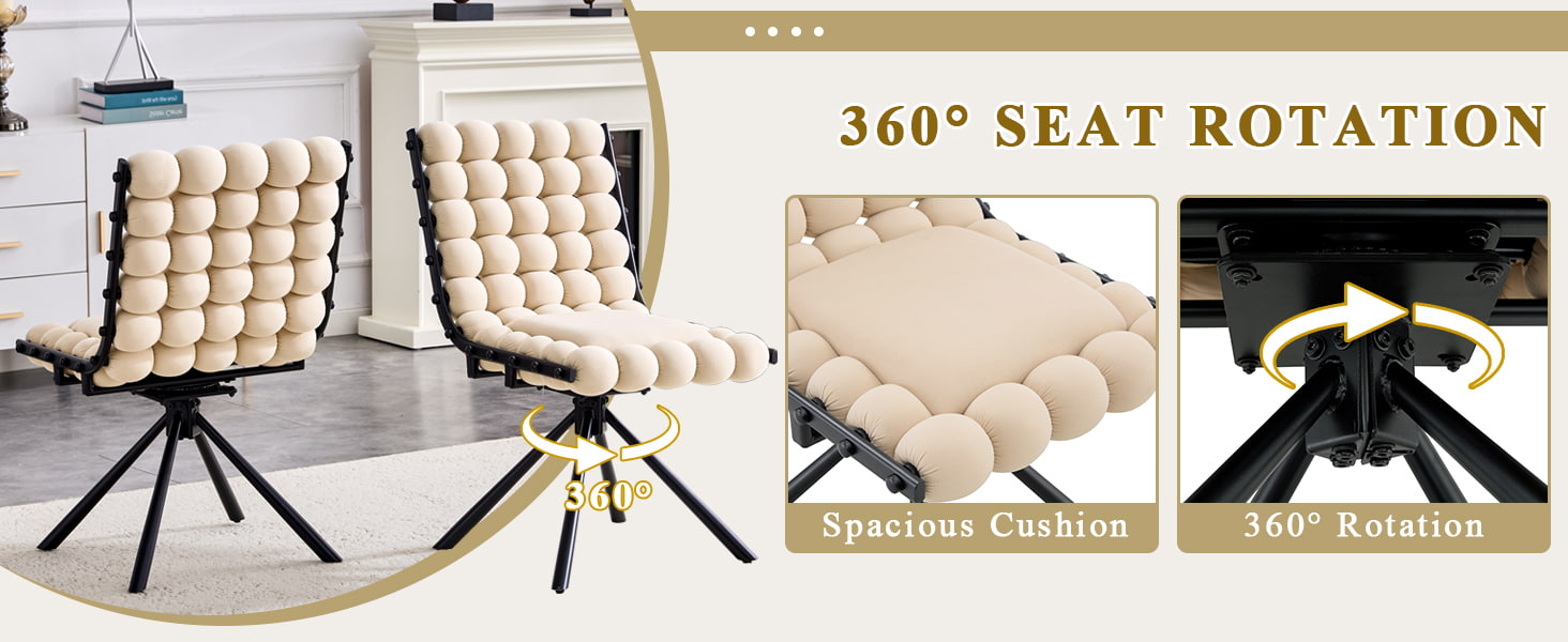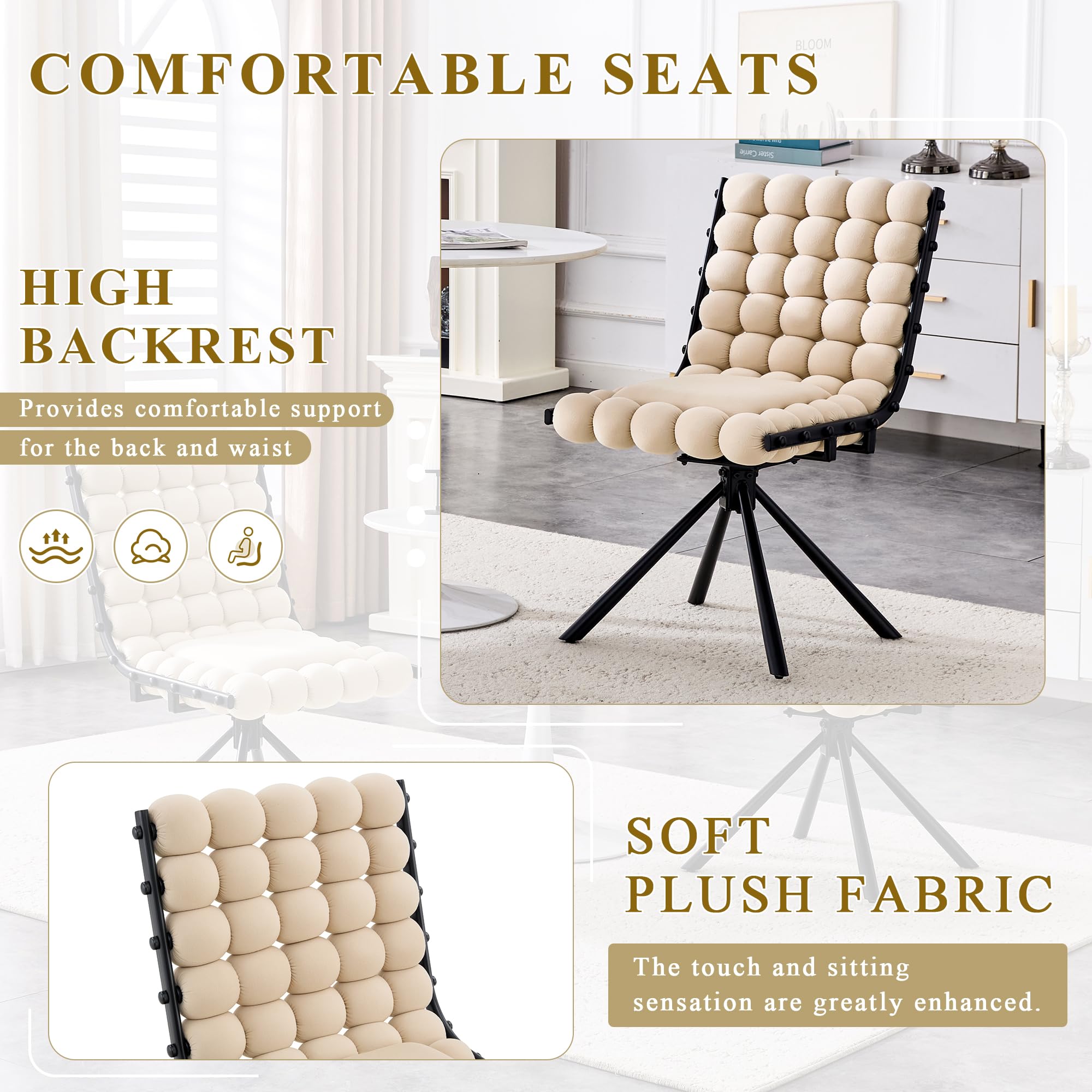বাবল কুশন ব্যাক সহ ভেলভেট সুইভেল ডাইনিং চেয়ার, মেটাল লেগ সহ আপহোলস্টার্ড অ্যাকসেন্ট চেয়ার (কোনও চাকা নেই)