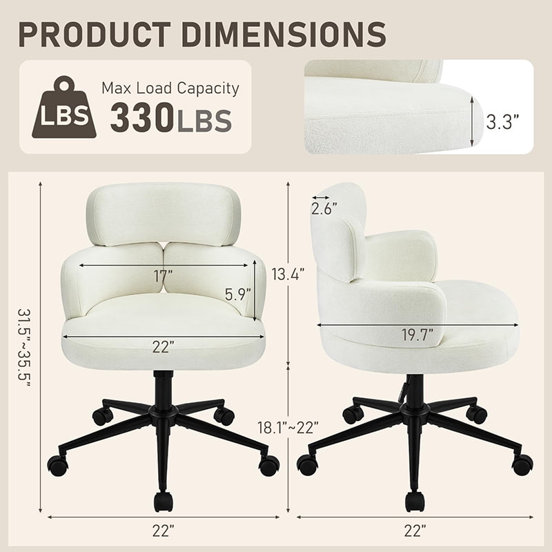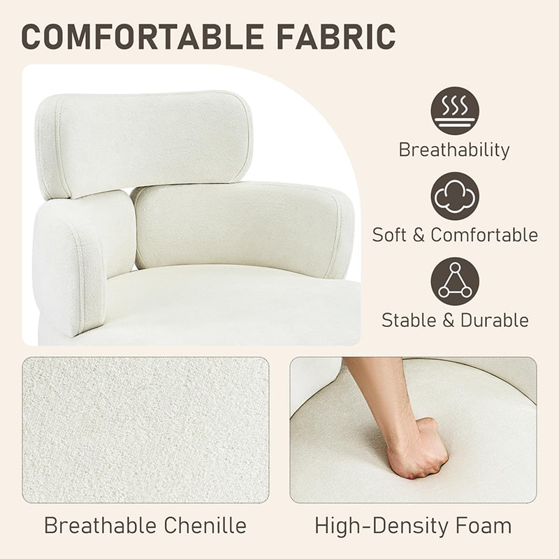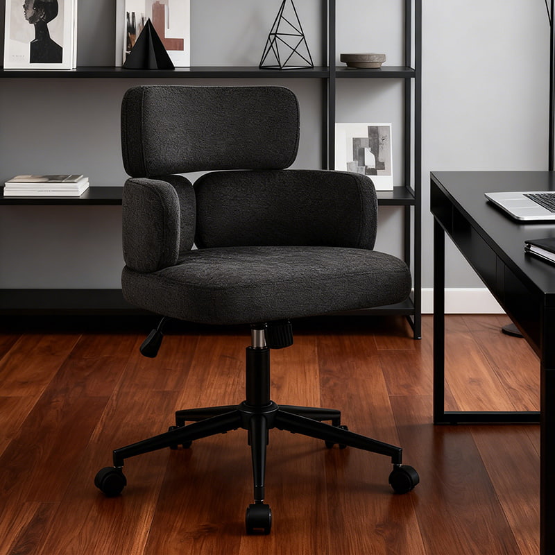 শ্বাস-প্রশ্বাসযোগ্য চেনিল ফ্যাব্রিকে মোড়ানো এবং একটি পুরু ফোম কুশন দ্বারা সমর্থিত, চেয়ারটি কাজ, পড়া বা শিথিল করার জন্য দীর্ঘস্থায়ী আরাম দেয়। সামঞ্জস্যযোগ্য আসনের উচ্চতা, মসৃণ 360° সুইভেল এবং একটি মৃদু রকিং ফাংশন ব্যবহারকারীদের সহজেই তাদের বসার অবস্থান কাস্টমাইজ করতে দেয়। নীরব কাস্টার সহ একটি শক্ত ধাতব বেস স্থিতিশীলতা, গতিশীলতা এবং মেঝে সুরক্ষা নিশ্চিত করে—এটিকে সমসাময়িক জীবনযাপনের জন্য একটি ব্যবহারিক এবং মার্জিত বসার সমাধান করে তোলে৷