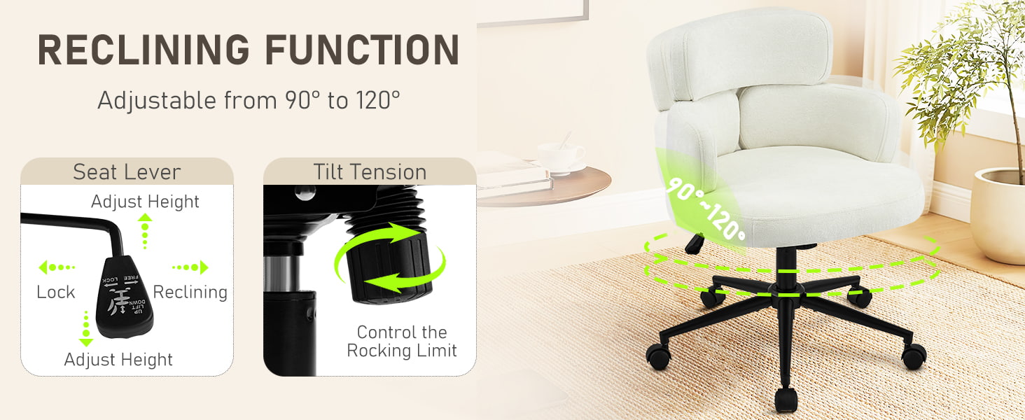 ● 90°–120° রকিং এবং টেনশন নিয়ন্ত্রণ সহ টিল্ট ফাংশন