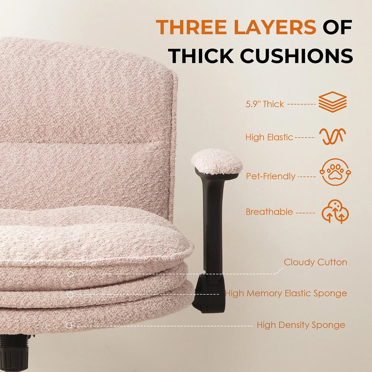 ● পোষ্য-বান্ধব, শ্বাস-প্রশ্বাসযোগ্য বাউক্লে ফ্যাব্রিক (স্ক্র্যাচ-প্রতিরোধী এবং ত্বক-বান্ধব)