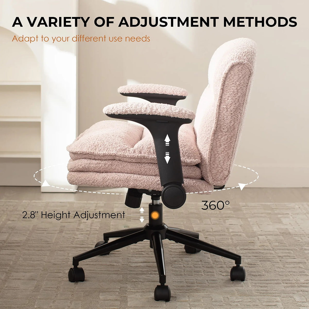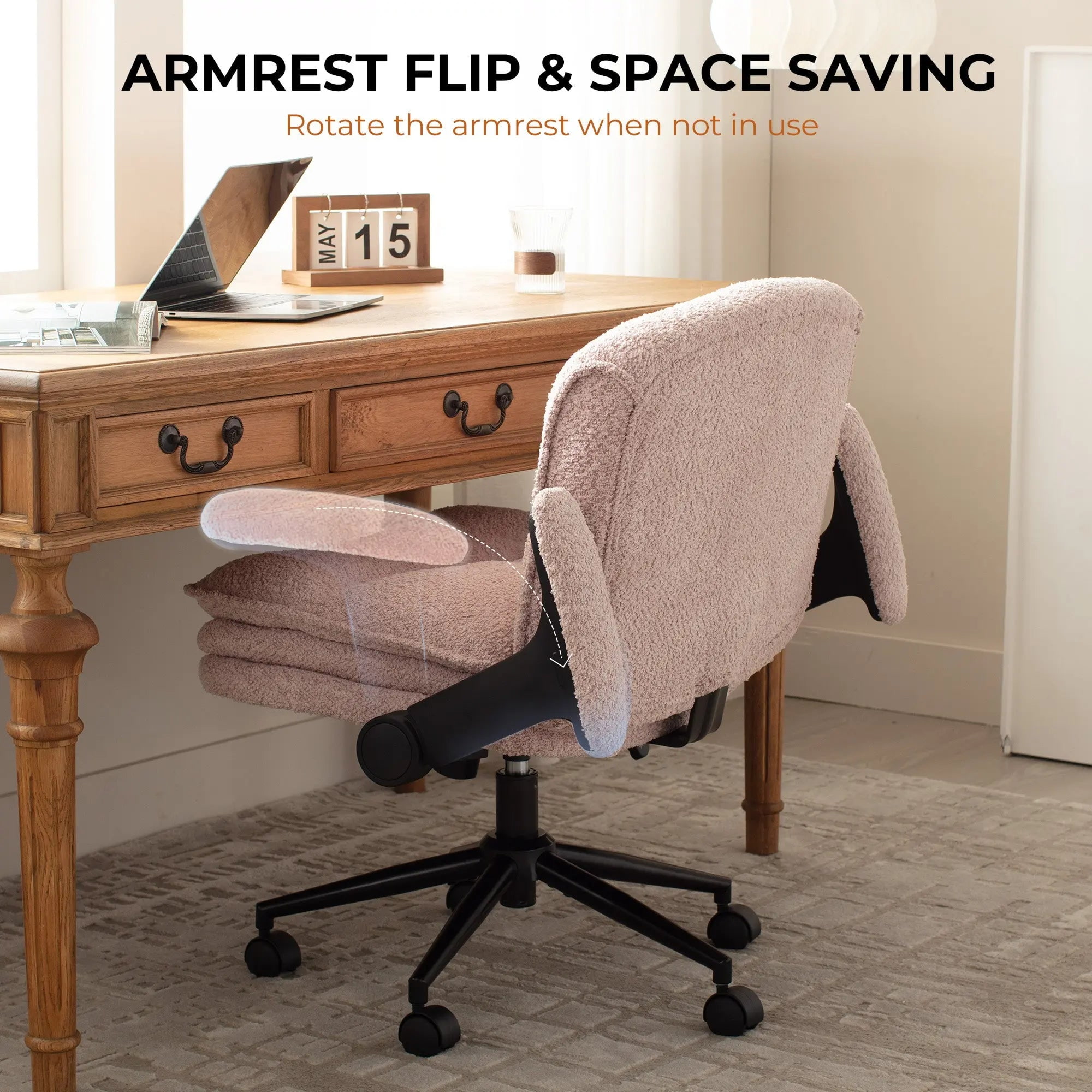 ফ্লিপ-আপ আর্মরেস্টগুলি নমনীয়তাকে সর্বাধিক করে — ক্রস-পা, পাশে, কুঁচকানো, বা সহজে সোজা হয়ে বসুন। এই চেয়ারটি আরাম, চলাচল এবং শৈলীর জন্য তৈরি করা হয়েছে, যা হোম অফিস, বেডরুম এবং সৃজনশীল স্থানগুলির জন্য পুরোপুরি উপযুক্ত৷