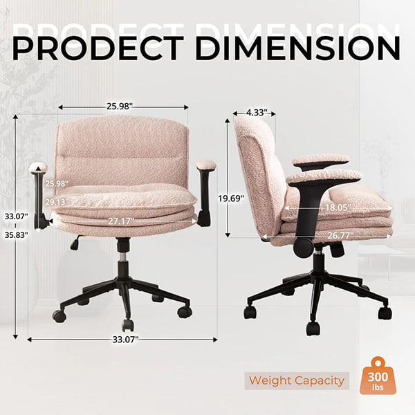 ② সামঞ্জস্যযোগ্য আর্মরেস্ট সহ এরগোনমিক ক্রস-লেগড ডেস্ক চেয়ার, 360° সুইভেল এবং পুরু কুশন — বাউক্লে হোম অফিস চেয়ার