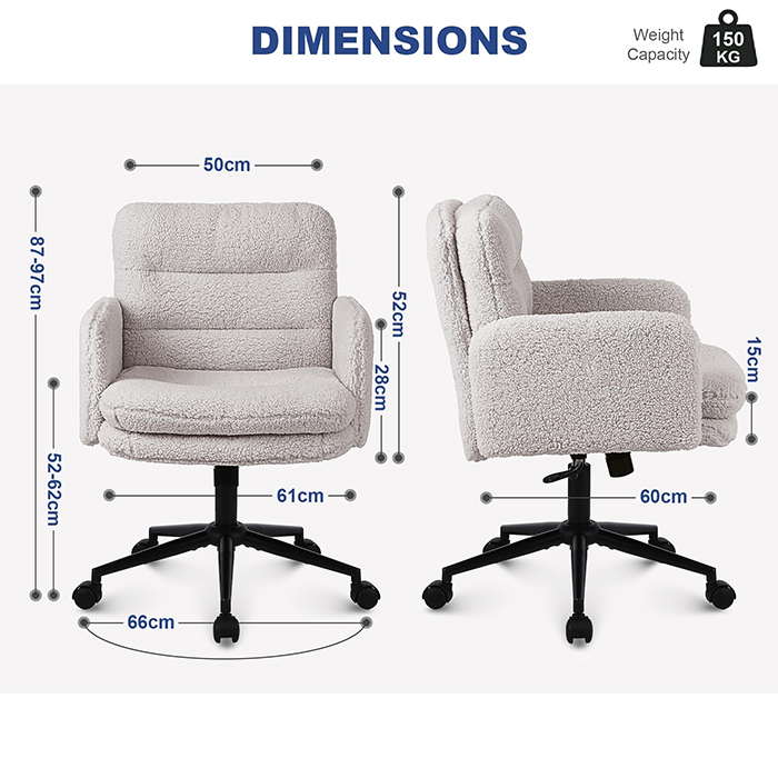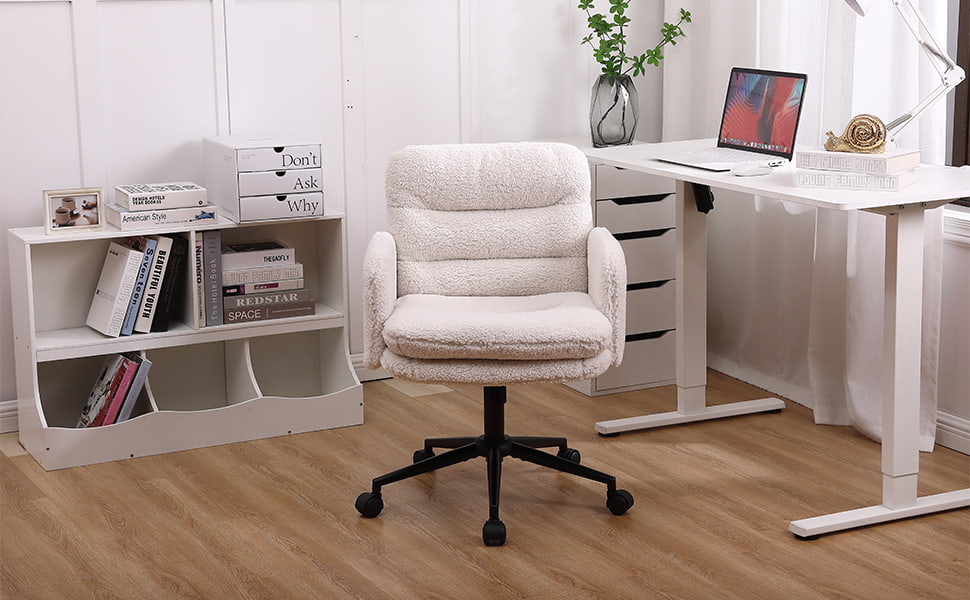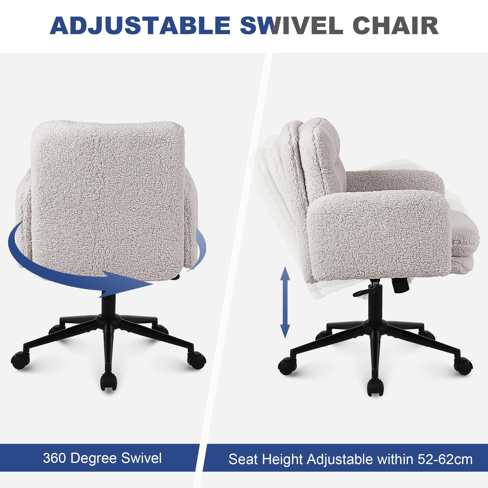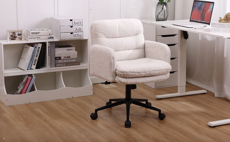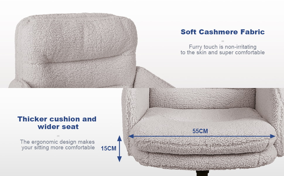 সুইভেল এবং রকিং ফাংশন সহ নকল কাশ্মীর সামঞ্জস্যযোগ্য অফিস চেয়ার - বাড়িতে এবং ভ্যানিটি ব্যবহারের জন্য নরম আপহোলস্টার্ড ডেস্ক চেয়ার