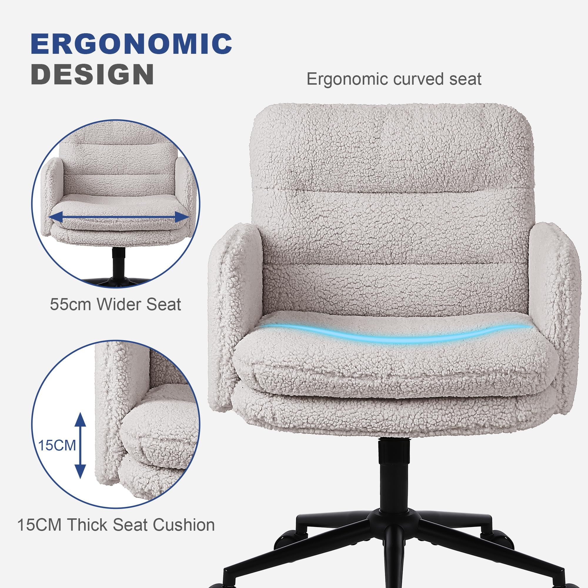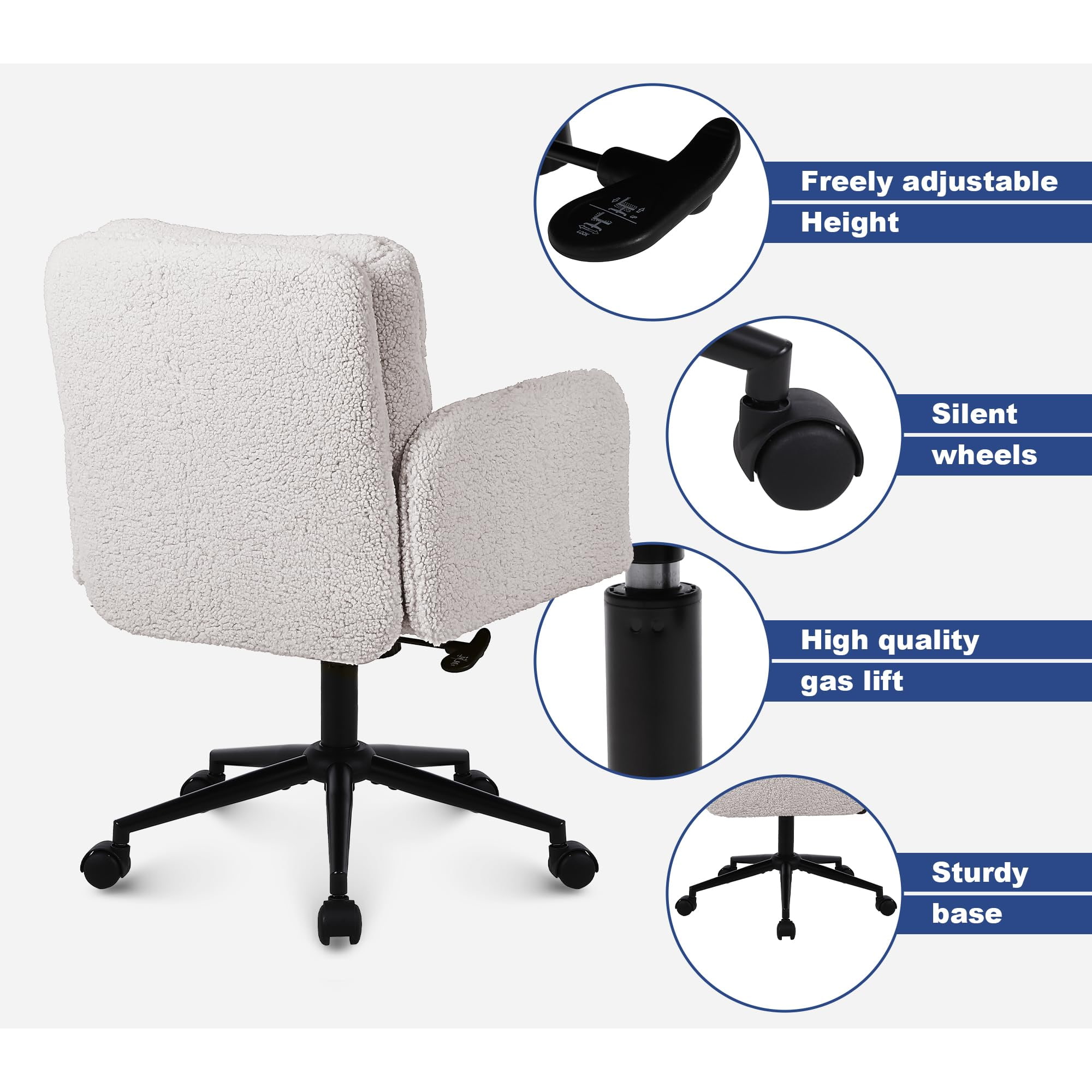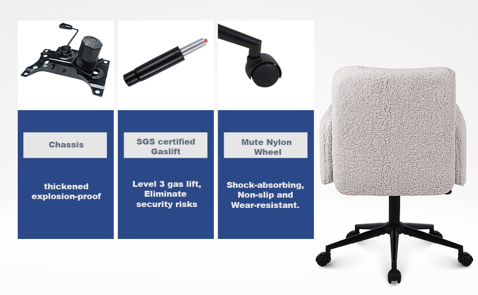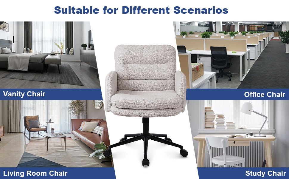 সুইভেল এবং রকিং ফাংশন সহ নকল কাশ্মীর সামঞ্জস্যযোগ্য অফিস চেয়ার - বাড়িতে এবং ভ্যানিটি ব্যবহারের জন্য নরম আপহোলস্টার্ড ডেস্ক চেয়ার