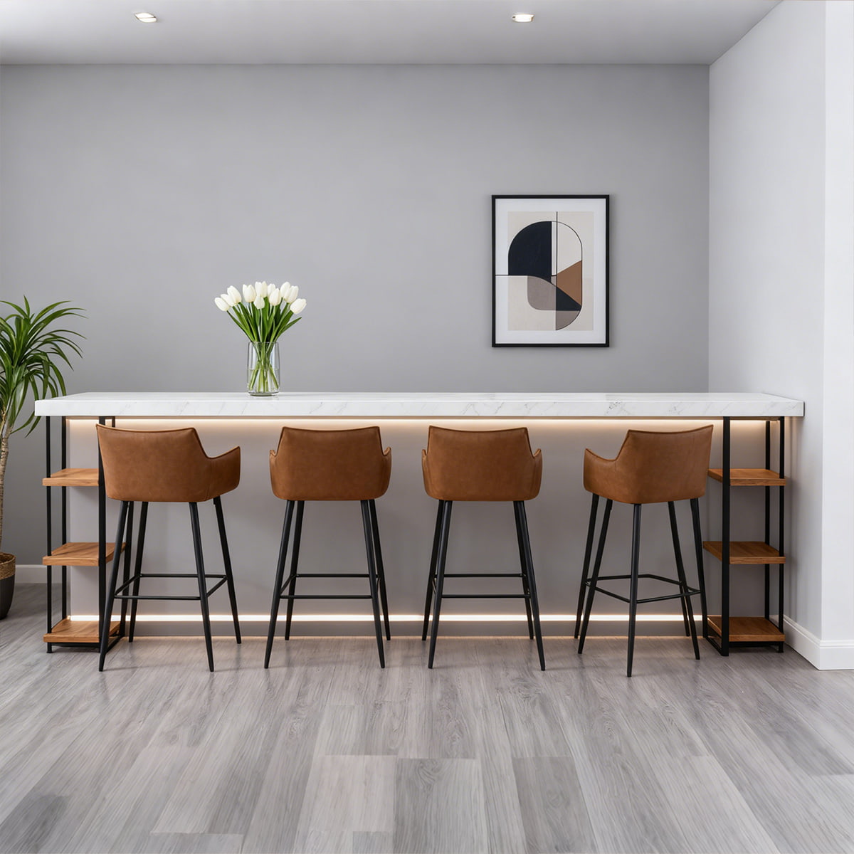 এর ন্যূনতম সিলুয়েট এবং ম্যাট কালো পা আবাসিক এবং বাণিজ্যিক উভয় অভ্যন্তর পরিপূরক - রান্নাঘরের দ্বীপ থেকে উচ্চতর বার পর্যন্ত। একটি বলিষ্ঠ ধাতব বেস এবং অ্যান্টি-স্লিপ প্যাড সহ, প্রতিটি মল 300 পাউন্ড ওজন ক্ষমতা সহ একটি নিরাপদ বসার অভিজ্ঞতা প্রদান করে। আধুনিক বাড়ি, বুটিক রেস্তোরাঁ, বা বার কাউন্টারের জন্যই হোক না কেন, এই মল প্রতিটি সেটিংয়ে নিরবধি পরিশীলিততা নিয়ে আসে৷